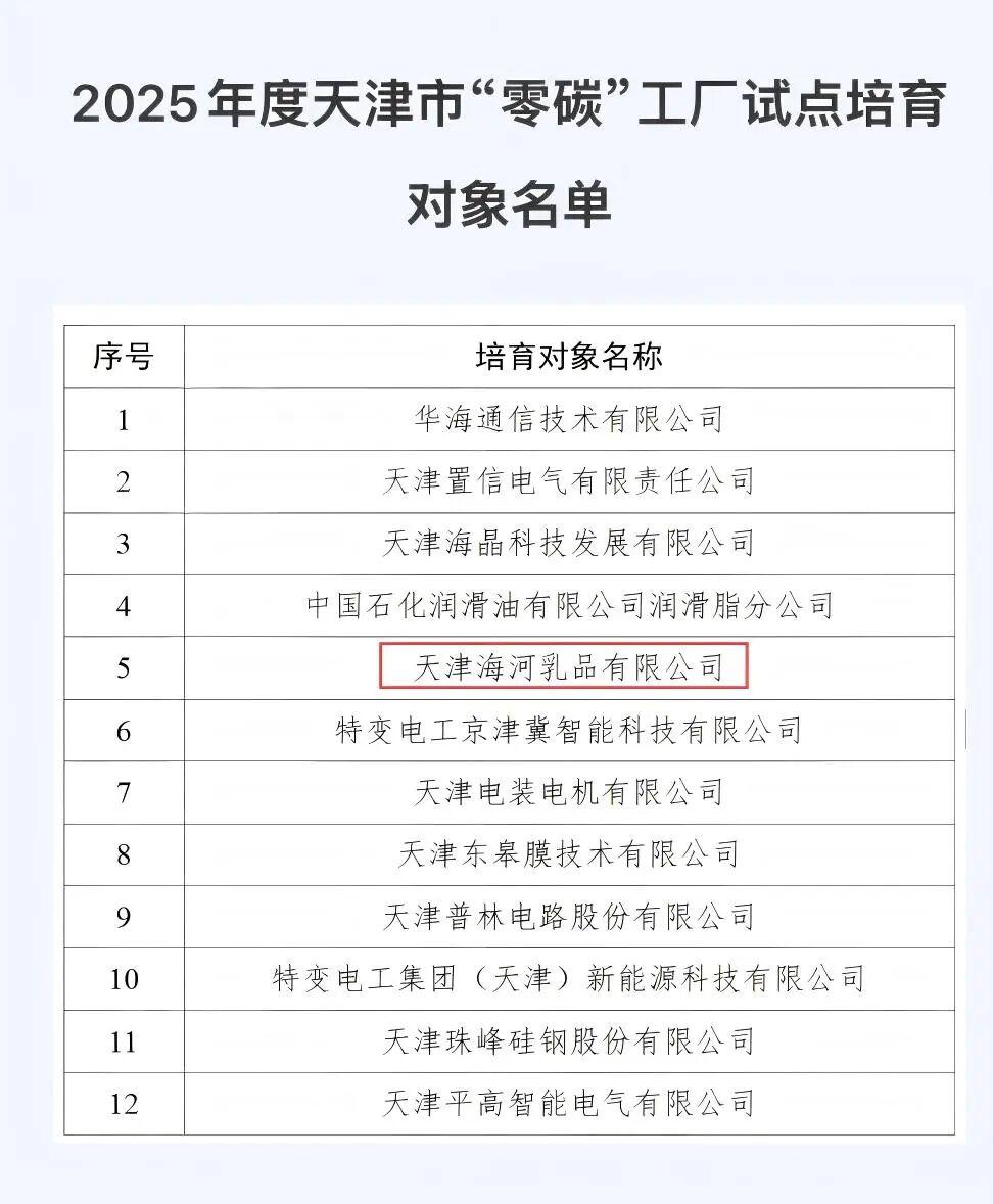 近日,天津市工業(yè)和信息化局公布2025年度“零碳”工廠試點培育對象名單。海河乳品公司憑借在綠色生產(chǎn)、能源結(jié)構(gòu)優(yōu)化及低碳創(chuàng)新領(lǐng)域的卓越實踐與前瞻布局,經(jīng)過多輪嚴(yán)格篩選,從眾多申報企業(yè)中脫穎而出,成功入選“零碳”工廠試點培育對象名單,彰顯了中華老字號乳企在綠色轉(zhuǎn)型道路上的先行姿態(tài)。